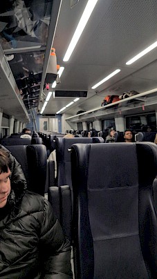 Train stayed put for an hour and there was zero communication on why we hadn’t moved. I ended up walking to the cafe car (they were giving people free food at least) and overheard the staff say that everything is hooked up again, but they do not know what is wrong.